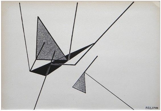 Regina original lithograph | Arte Concreta, Groupe Espace - Medium: original lithograph by artist Regina Cassolo Bracchi, better known simply as Regina. Executed for the very rare 1955-56 volume of Documenti d'Arte d'Oggi. Sheet size 8 1/2 x 12 1/2 inches (220 x 320 mm) - Professionally Framed & Matted - Comes With Certificate - -