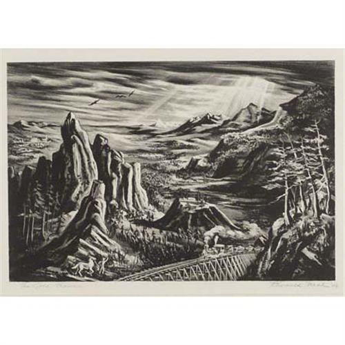 8062 Reginald H. Neal (1909-1992) Lithograph "The Gold Train" '46 Signed lower right 9" x 13"