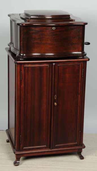 Description Refinished. Mahogany serpentine with 78 base and tone arm, and 52 discs. Working. Condition (Excellent). Size 15 - 1/2".