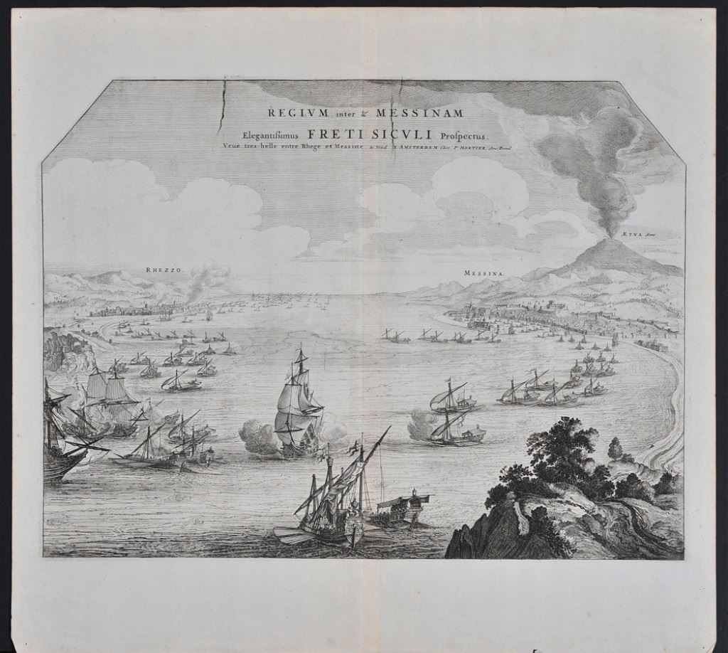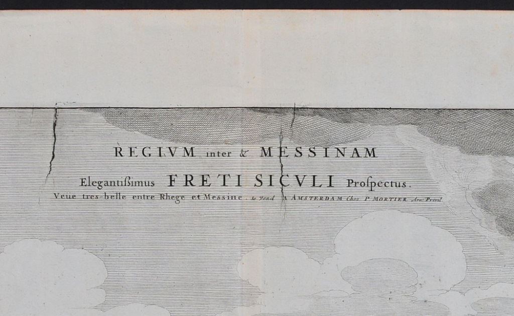 CONDITION REPORT: expected fold at center, minor spotting and toning on edges, two 2" repaired tears at top edge of image