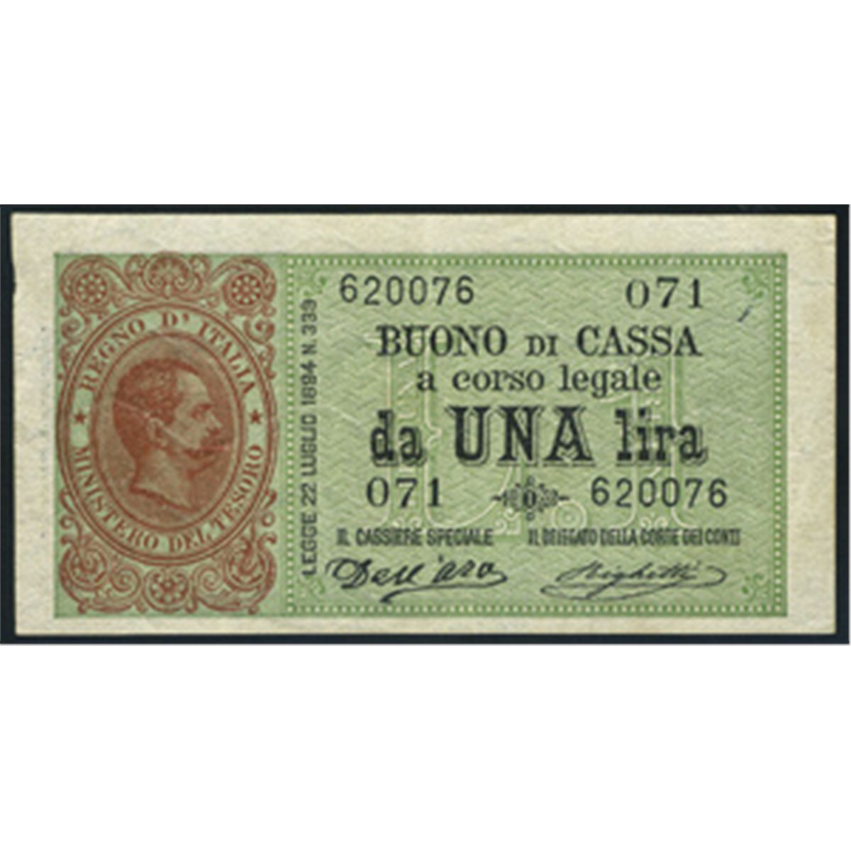 Cartamoneta. Regno d'Italia. 1 lira 'Umberto I', 9/11/1895. A. BI.6. RRR. SPL.