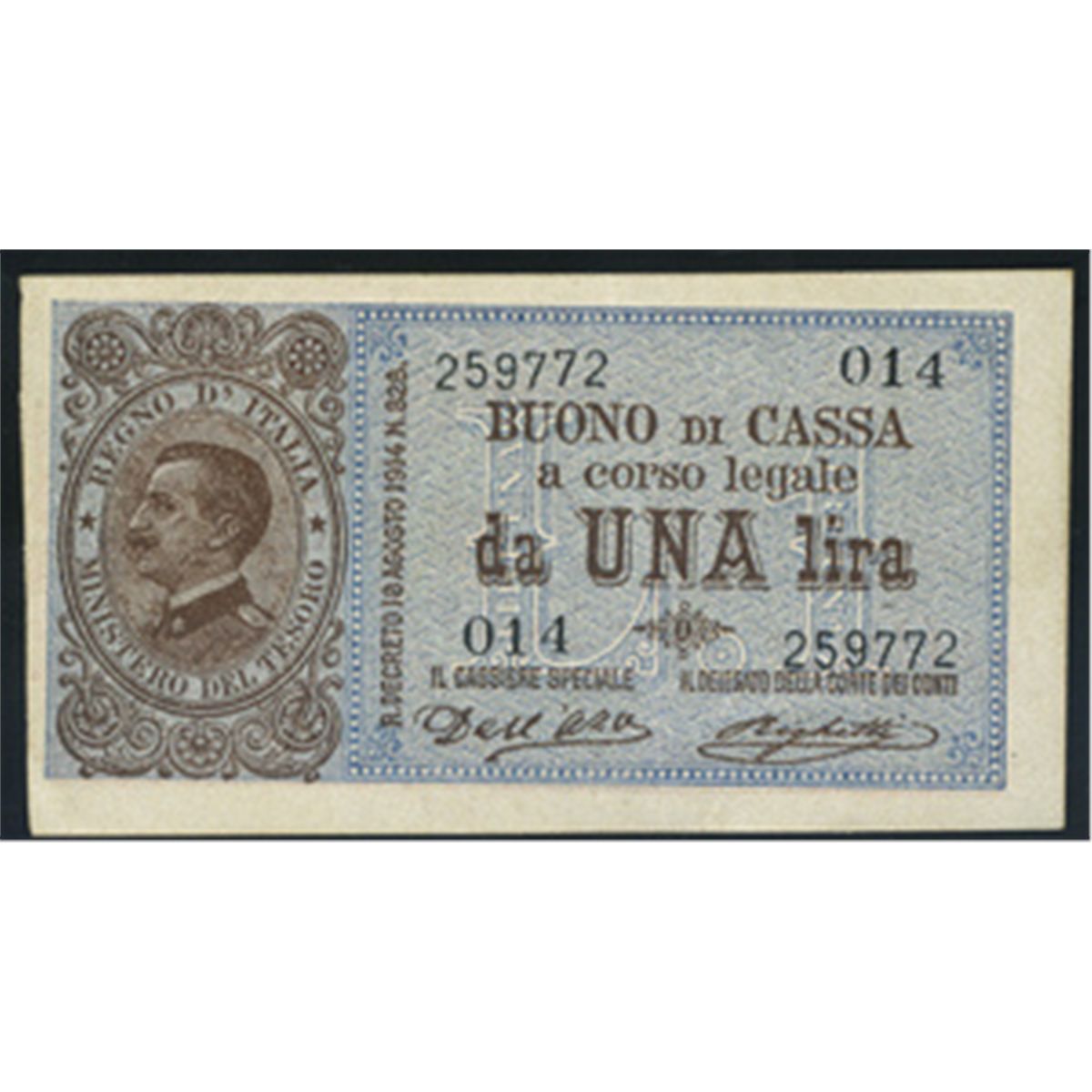Cartamoneta. Regno d'Italia. 1 lira 'Vittorio Emanuele III', 18/8/1914. A. BI.10. NC. FDS.
