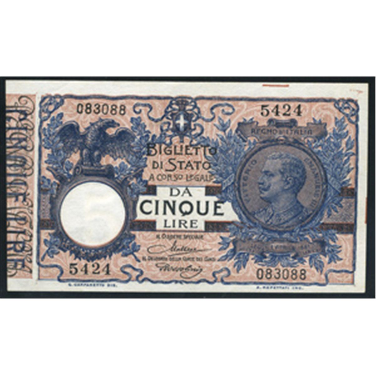 Cartamoneta. Regno d'Italia. 5 lire 'matrice laterale', 10/9/1923. A. BI.56. R. FDS.