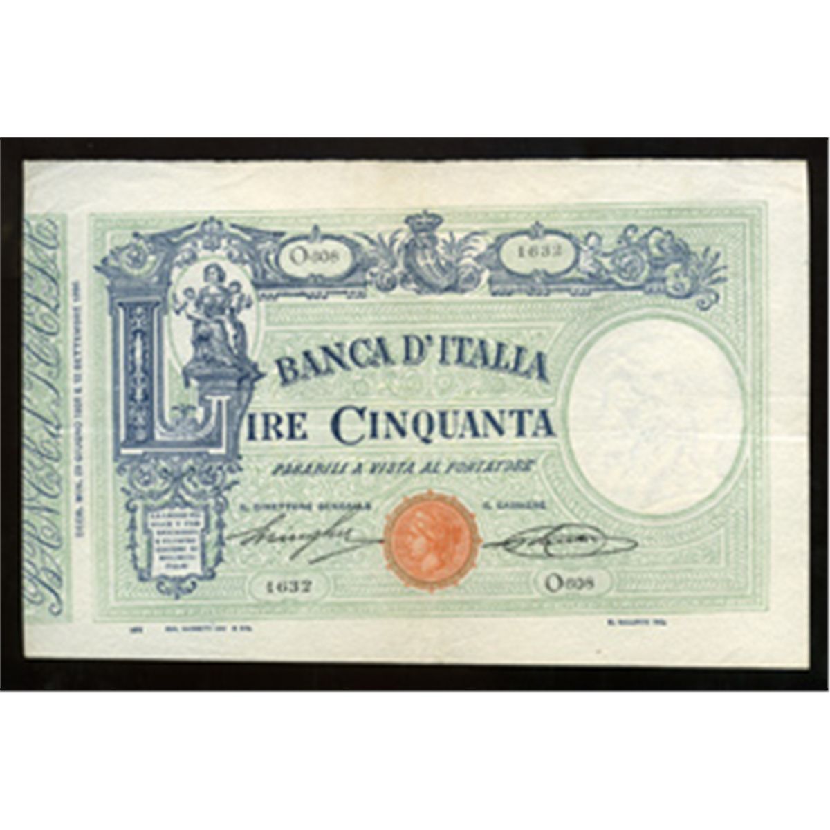 Cartamoneta. Regno d'Italia. 50 lire 'con matrice', 29/6/1926. A. BI.162. RR. Piega a quattro. BB.