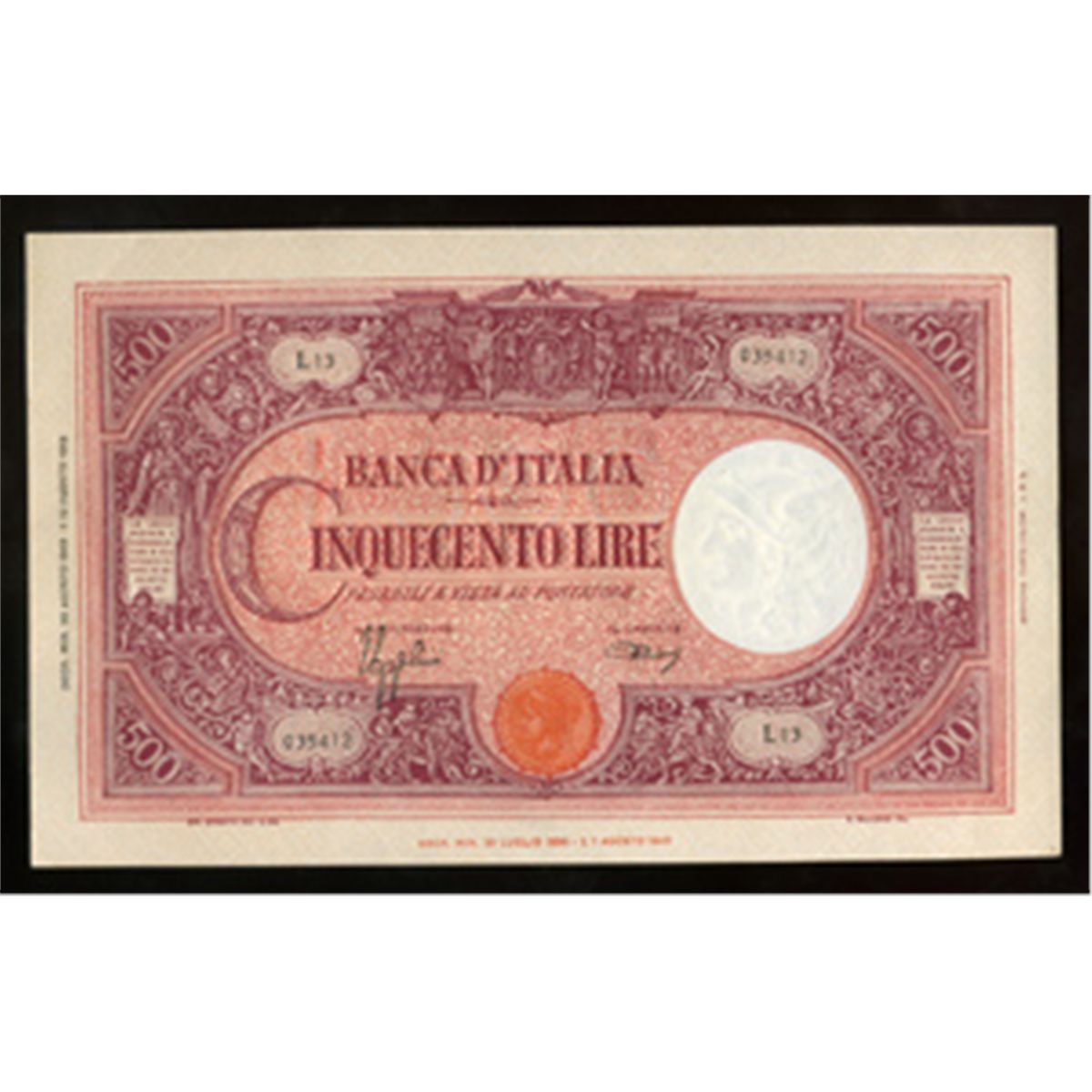 Cartamoneta. Regno d'Italia. 500 lire 'grande C', 23/8/1943. A. BI.464. R. FDS.