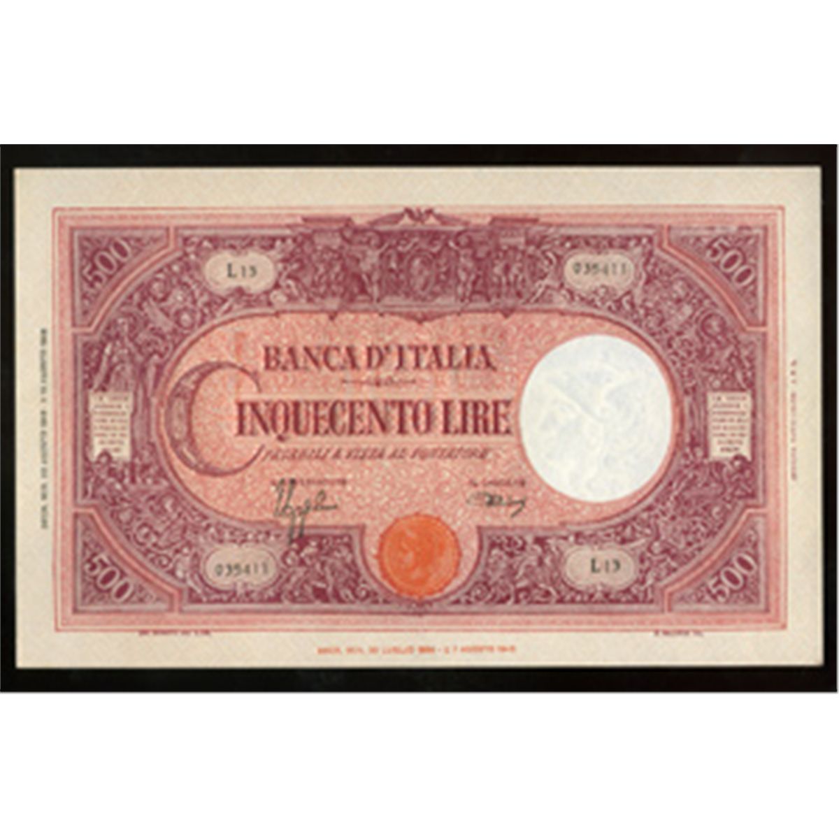 Cartamoneta. Regno d'Italia. 500 lire 'grande C', 23/8/1943. A. BI.464. R. FDS.