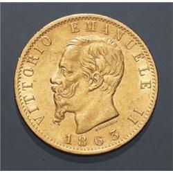 Vittorio Emanuele II (1861-1878) - 20 Lire - n. 7 esemplari 1863, 1865 (2), 1867, 1868 zecca di Torino, 1873 zecca di Milano e 1877 zecca di Roma, oltre a n.1 esemplare del 10 Lire 1863 zecca di Torino