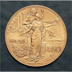 Vittorio Emanuele III (1900-1946) - 50 Lire Cinquantenario 1911 - Piccolo colpo al diritto