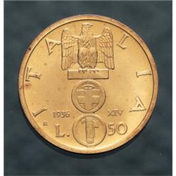 Vittorio Emanuele III (1900-1946) - 50 Lire Impero 1936 - Corredata di bustina originale della Zecca