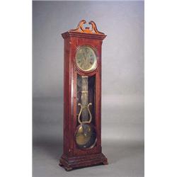 Regulador con péndulo compensatorio, en caja de nogal. Trabajo español, ffs. S. XIX. Altura:190 cms.