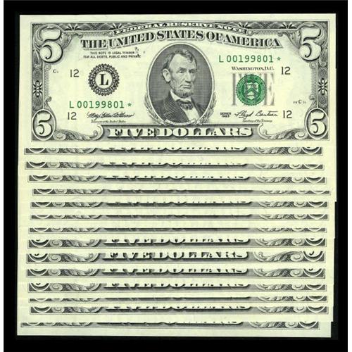 <B>Regular and District Star Sets $5 1993 Federal Reserve Notes. Gem Crisp Uncirculated.</B></I><BR> This lot includes the regular and replacement notes that were printed at both Washington and Fort Worth. The only note missing from these sets is the scarce Minneapolis regular note that was printed at Fort Worth.<BR><I>From The Thomas M. Flynn Collection</B></I><BR><BR><b>Shipping:</b> Coins & Currency (<a target="_blank" href="http://www.heritageauctions.com/common/shipping.php">view shipping information</a>)