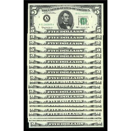 <B>Regular and Star District Sets $5 1963 Federal Reserve Notes. Gem Crisp Uncirculated.</B></I><BR> All ten districts that issued regular and replacement notes for this series are included with this lot. Nice embossing is seen on all of these gems.<BR><I>From The Thomas M. Flynn Collection</B></I><BR><BR><b>Shipping:</b> Coins & Currency (<a target="_blank" href="http://www.heritageauctions.com/common/shipping.php">view shipping information</a>)