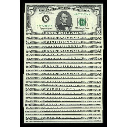 <B>Regular and Star District Sets $5 1963A Federal Reserve Notes. Gem Crisp Uncirculated.</B></I><BR> A complete district set of both regular and replacement notes from this series is included with this lot. All 24 notes look like they were pulled from the pack yesterday.<BR><I>From The Thomas M. Flynn Collection</B></I><BR><BR><b>Shipping:</b> Coins & Currency (<a target="_blank" href="http://www.heritageauctions.com/common/shipping.php">view shipping information</a>)