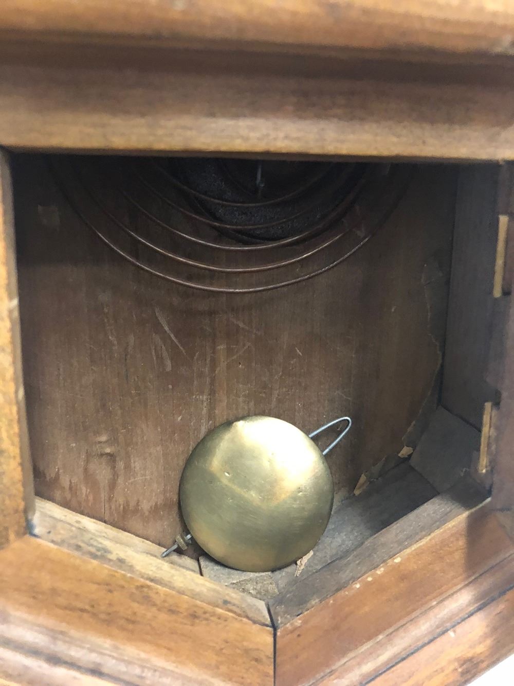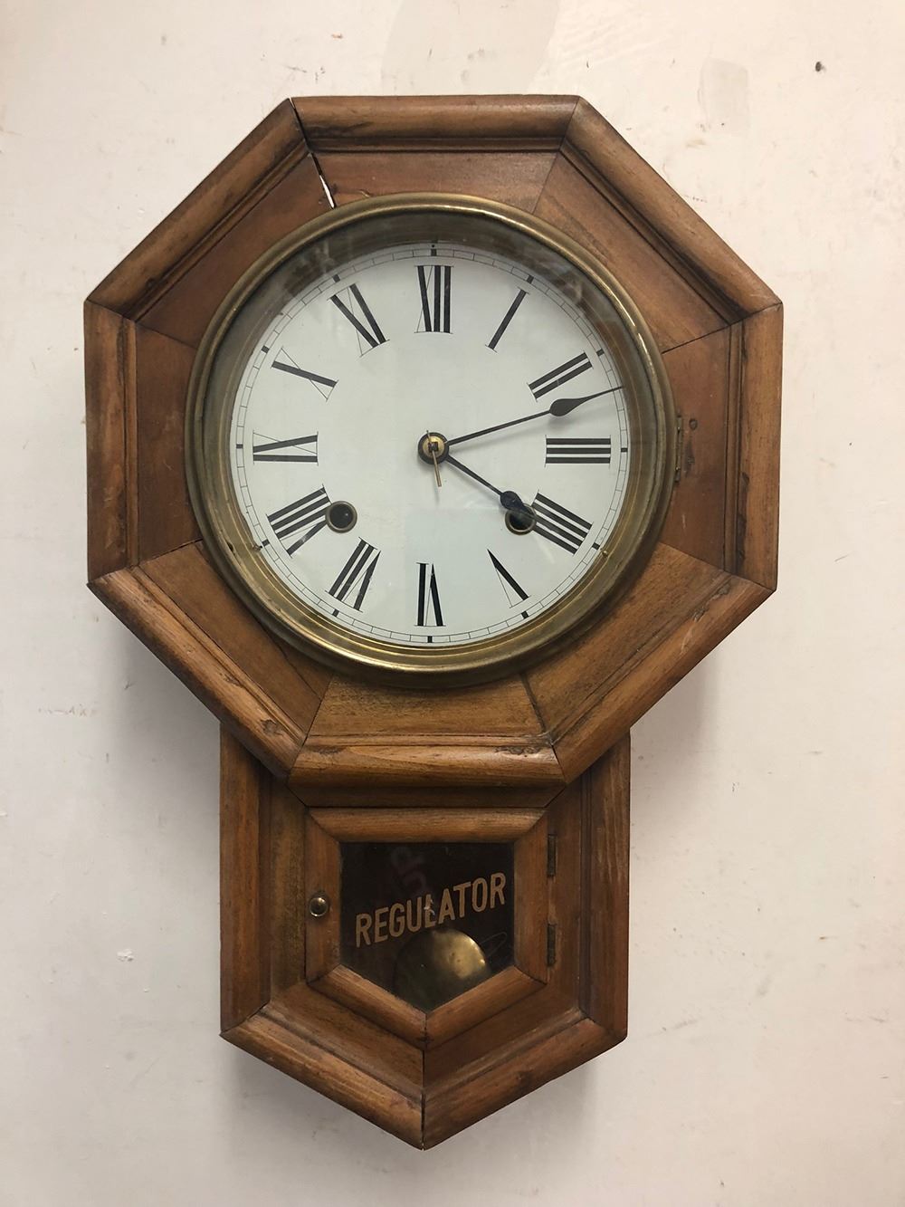 Small size oak regulator clock, with Regulator on glass, with pendulum, Oak case.