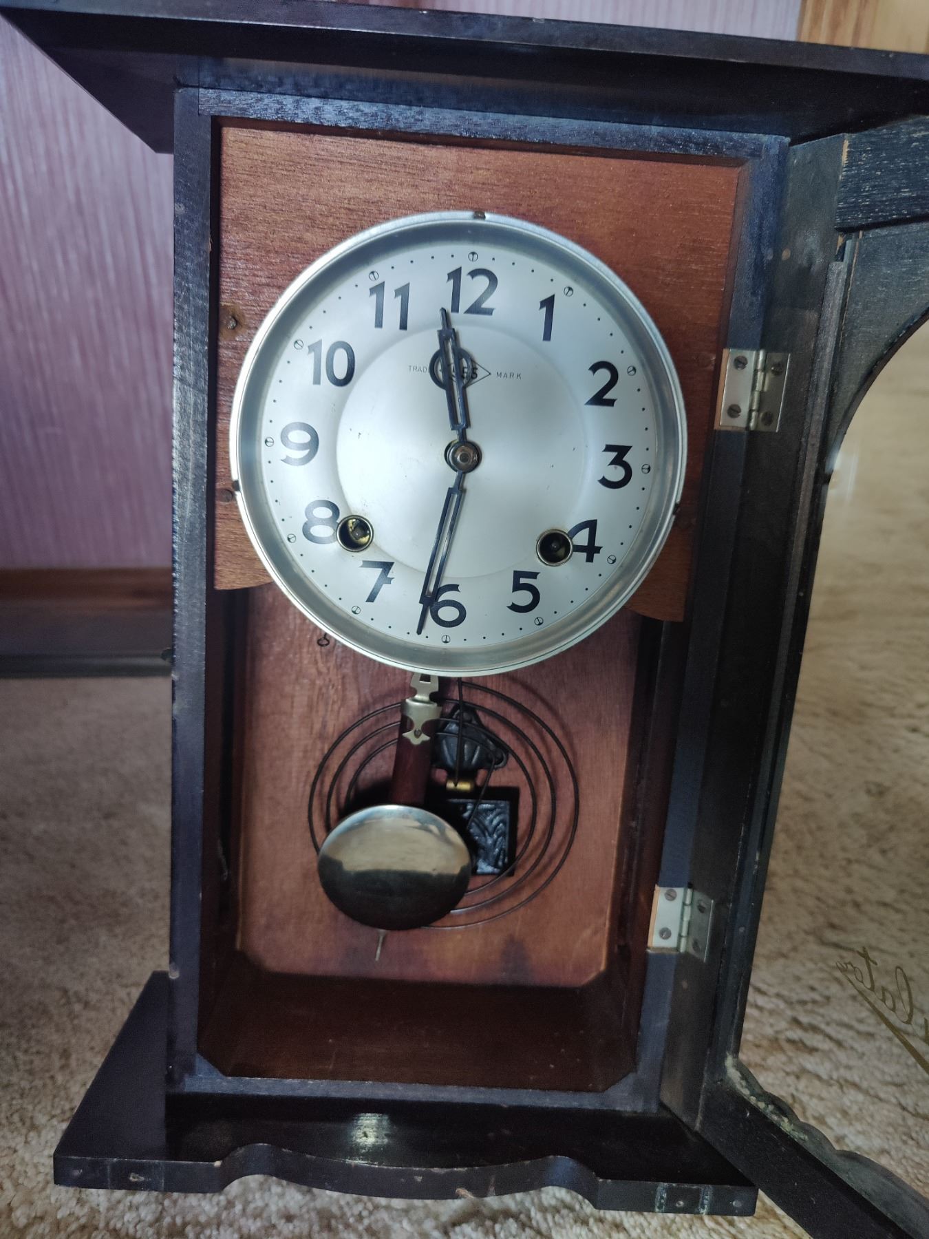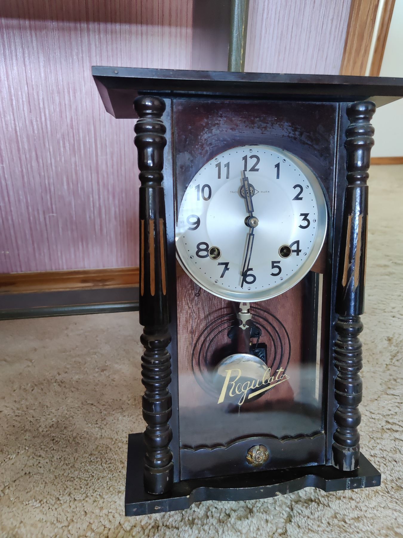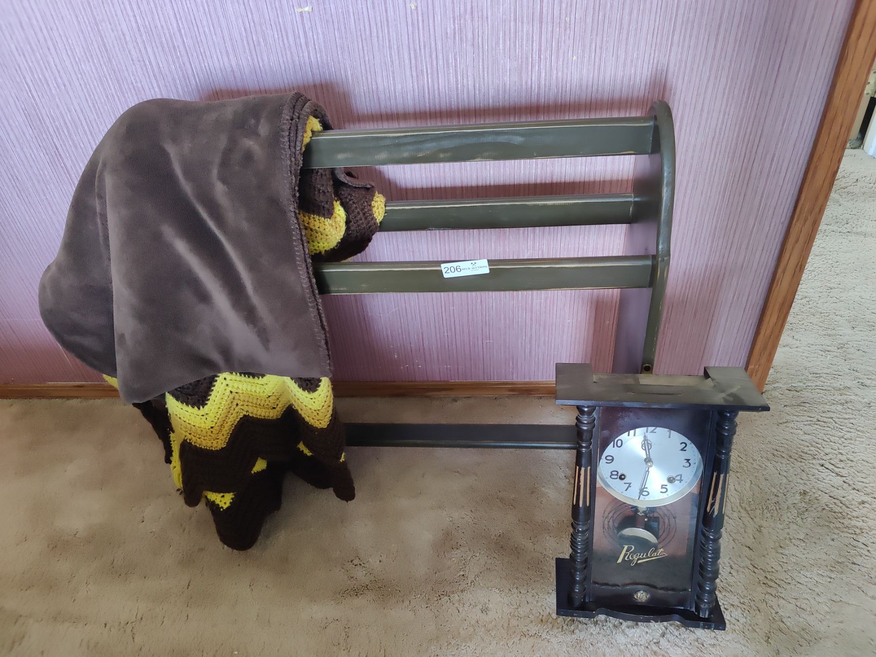 Regulator Pendulum Clock, Handmade Quilt, and Towel Rack