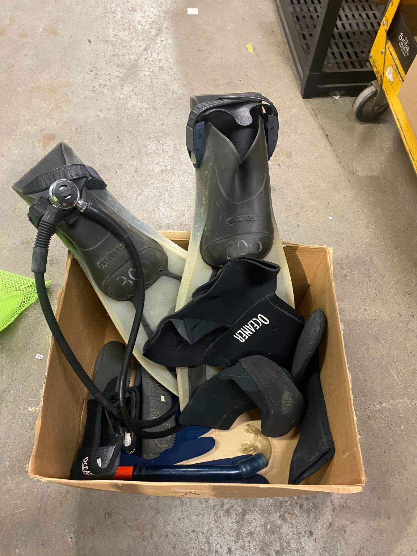 Regulator, flippers, booties and gloves