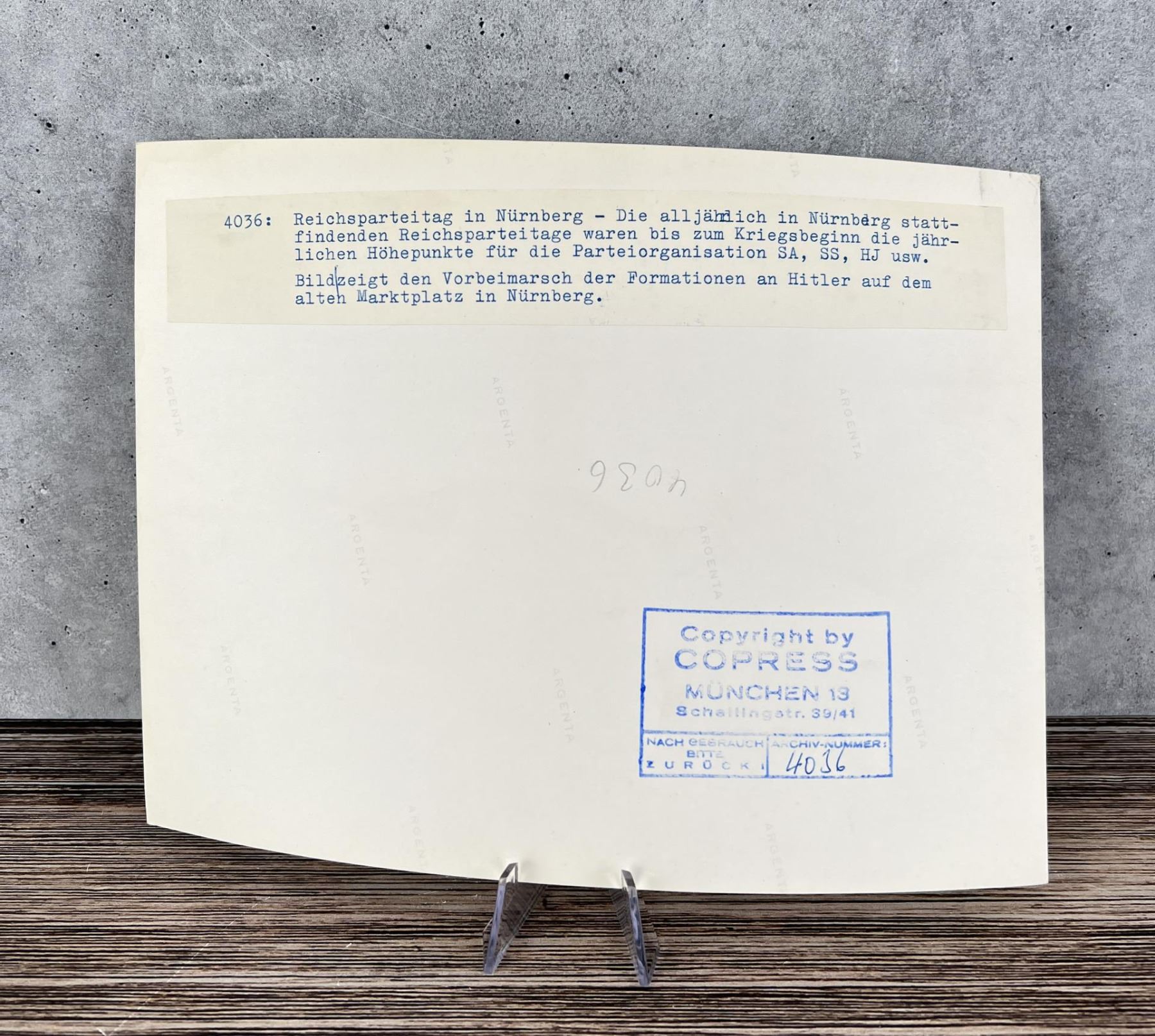 Copress Munich press photo. 9" by 6 3/4".