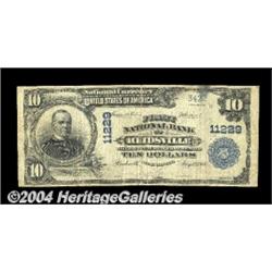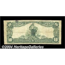 Reidsville, NC - $10 1902 Plain Back Fr. 632 First NB Ch. # 11229A solid Fine from the only issuing bank in this Rockingham County locale and one of only two to issue in the entire County. Reidsville was originally settled as Wright's Cross Roads in the early 1800's by William Wright. The home of early settler Robert Payne Richardon, son-in-law of Wright's son Nathan, still stands. Tobacco has long been a mainstay of the local economy with the history of the town and the American Tobacco Company tightly interwoven. The latest published version of the Kelly census indicates a miniscule outstanding from here of only $450 in 1935, with but five large size traced. A very important note with the upper end estimate difficult to determine because of its overall scarcity. We conservatively expect bidding will end in the range of... <BR><BR><B>Important notice:</B> Heritage usually auctions material at the rate of 200-250 lots per hour. On some occasions eBay Live bid software or the Internet may not be able to keep up with the pace of the auction. We recommend placing a realistic absentee bid now as insurance to avoid disappointment. Occasionally the auctioneer may eliminate or reject an eBay Live bid, and the auctioneer may also reopen a lot after the close of the eBay live bidding (usually because we missed an audience bid), and may reject your bid even if it shows you as the winning bidder. By bidding via eBay Live, you agree that Heritage may award the lot to another bidder at its sole discretion under the circumstances described above or any other reasonable circumstances. Since eBay bids are not shown to us until we open the lot on the floor, we treat those bids just like floor bids. In most cases the floor responds before the eBay bid is presented to us, due to Internet lag time, so for consistency we have made it a policy that floor bids are always considered first over tie eBay live bids. Also please note that all Heritage lots purchased through eBay Live carry a 20% Buyer's Premium. Please make sure you read the Terms and Conditions before you bid. <BR><BR><B>IMPORTANT ANNOUNCEMENT ABOUT RESERVES:</B> Heritage now divulges all reserves on its web site 7 days before every auction. If you want to know whether the reserve on this lot has been met, and if not, what the reserve amount is, please visit this lot page on the HeritageCoin.com web site, or email: bid@HeritageGalleries.com