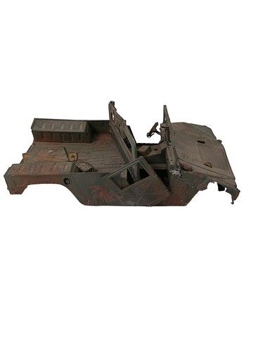 A very rare screen used extra large model collectable! From the 2002 cult classic "Reign of Fire" , the Christian Bale, Matthew McConaughey starring special effects extravaganza about a horde of fire-breathing dragons that emerge from the bowels of the Earth to wreck havoc on the planet. This is one of only a very few model vehicles used in the film. The full size jeep was used in several scenes, and then this exact replica model was used when one of the dragons does a surprise fiery night raid on the group, and is then seen destroyed the morning after. The jeep has a wood undercarriage, and is made of special Plexiglas, that has been painstakingly art-directed and painted in fine detail to give it the look of a vehicle that had withstood the fiery onslaught of a flying dragon! With extra fine detailing of cargo, storage bins and tires with appropriate melting effects. The seats are detachable for production manipulation. Since only the driver's side was photographed, Jeep was crafted with only those two tires. Comes with a Certificate of Authenticity. Jeep is approx. 30"x14"X12".