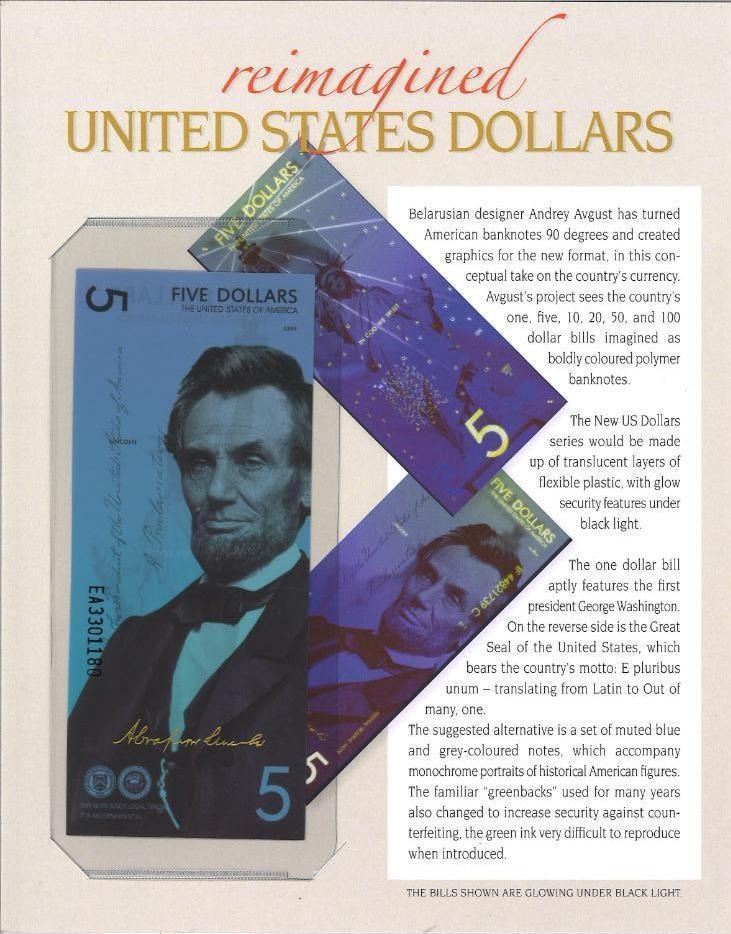 Reimagined Glows In The Dark United States Dollars - Five Dollars w/ Giclee Art Card Story, With Gol