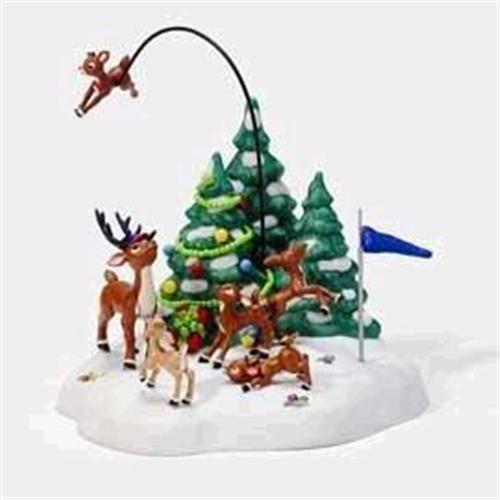 Department 56, North Pole Series: "Reindeer Games" is an animated (Rudolph flies and lands)commemorative to the 40th anniversary of the holiday TV special "Rudolph the Red-Nosed Reindeer." Limited to year of production and retired in 2004 this charming Christmas collectible is Mint in the Box.