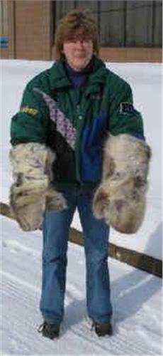 This line of clothing was developed for a film company in London for use in Greenland in the filming of a re-creation of the race to the South Pole between Scott and Amundsen. The long gloves are ideal for wearing around a fire after a day of snowmobiling. They are not suitable for driving.
