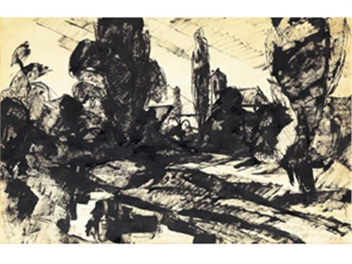 Indian ink, paper. 31 x 48 cm. Signed lower right: Reiner 928