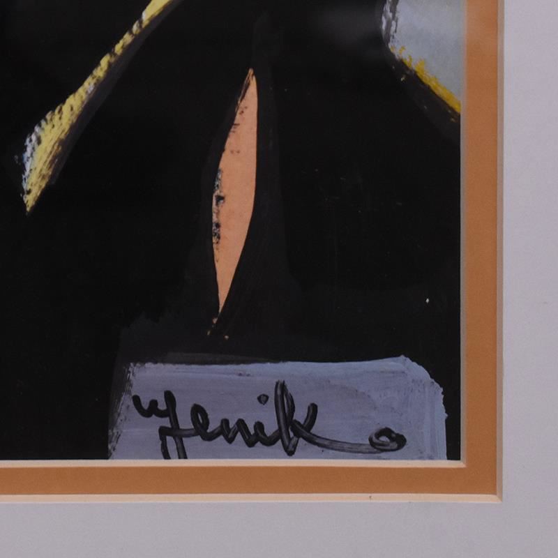 This is an original acrylic painting on paper by Jenik Cook, hand signed by the artist. This piece comes framed. Includes Letter of Authenticity. This piece comes from the artist's personal collection. Measures approx. 32 x 25" (frame), 23.5" x 16.5" (image). ** Please note: There is noticeable wear on the corners and edges of the frame. **