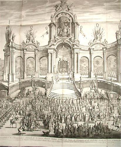 Edition originale. Complet de la très grande planche dépliante figurant la réception de la Joyeuse-Entrée de l'impératrice Marie-Thérèse à Gand.