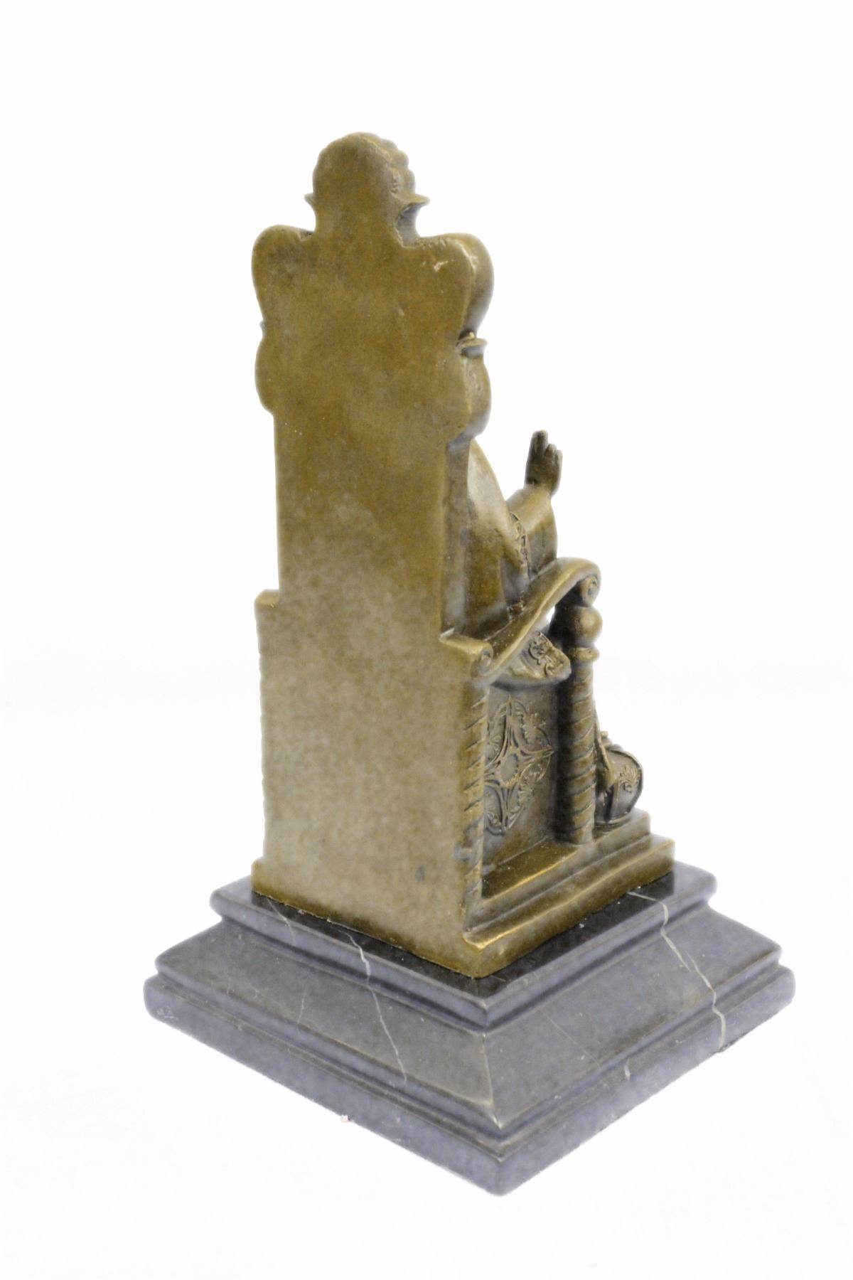 The Bronze Sculpture Honoring Jesus Christ Shows Him Seated On A Throne Of Heaven. The Right Hand Is The Place Of Honor And The LordS Sitting Down At The Right Hand Of The Father Is Generally Termed His Session. After Jesus Was Resurrected And Ascended To The Father, Having Passed Through The Heavens He Sat Down Once And For All After The Sacrifice Of The Cross. He Entered Into The Heavenly Temple Of God, And There He Received The Official Proclamation Of His Victory On The Cross, Sit Down At My Right Hand Until I Make Your Enemies A Footstool For Your Feet. He Is Seen In The Sculpture At Peace; With A Watchful Love From The Sanctity Of Heaven He Raises Two Fingers From His Right Hand Emitting His Blessing Upon The Inhabitants Of The World. The Sculpture Was Cast Using The Archaic Method Of Lost-Wax Casting And Stained With A Brown Patina Finish For Perpetuation and It Is Mounted Upon A Black Marble Base. Bronze dimensions with marble base: Height 10 X Width 5 inches. Weight: 7 lbs.Please Note: This is a reproduction bronze sculpture from the original molded and signed. This featured bronze sculpture is a recast after the original, and has been done recently. This 100% bronze sculpture is an abstract piece certain to be a conversation piece.Please Note: This is a reproduction bronze sculpture from the original molded and signed. This featured bronze sculpture is a recast after the original, and has been done recently. This 100% bronze sculpture is an abstract piece certain to be a conversation piece.