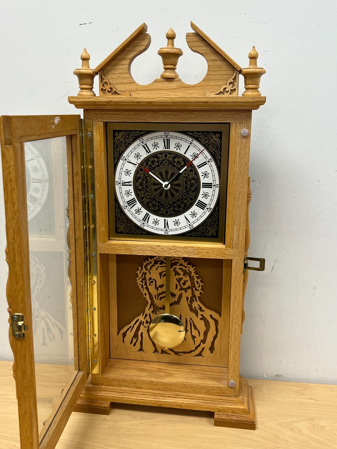 Religious Figure Mantle Clock - Tested quickly and worked - Approx: 26"T 13"W