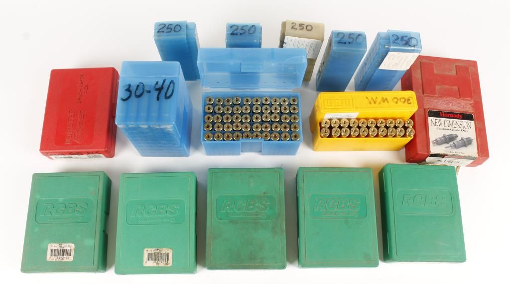 Dyes: 35 Whelen, 338 Win, 300 Win, 7mm-08 Benchrest, 280 Rem, 30/40 Krag, 32 H&R mag. Assorted brass.