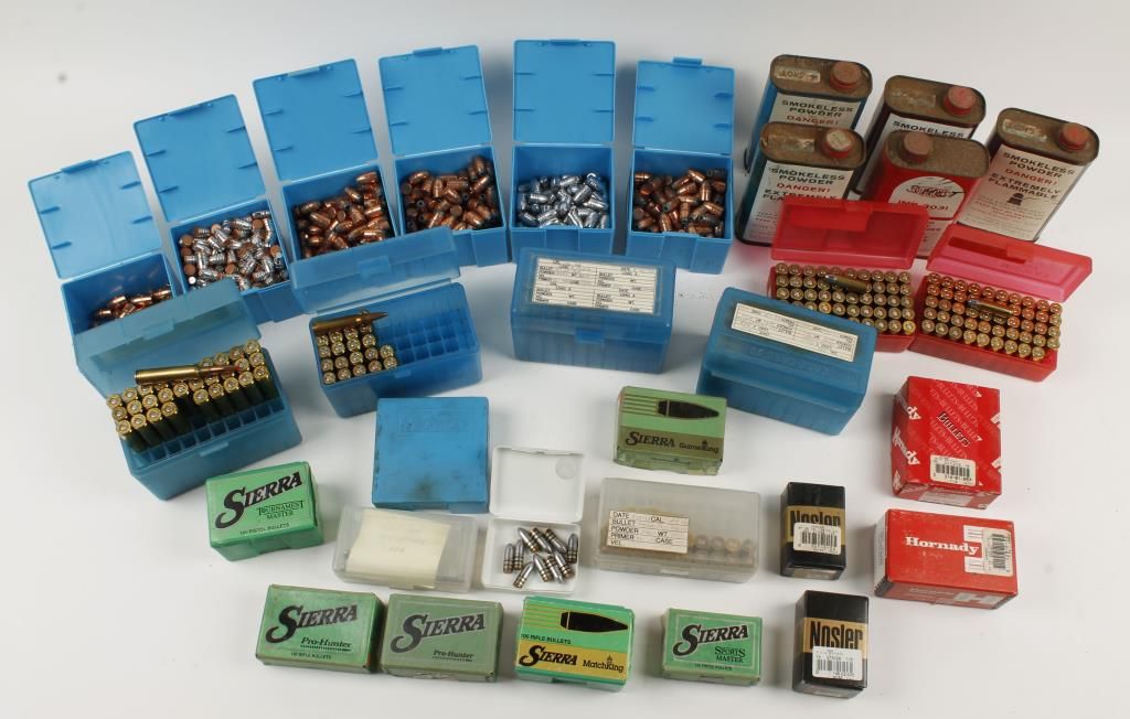 45/70 bullets (500+), 30 cal bullets 100+, 100 rounds 44 mag, 5 cans of assorted shot, and more.