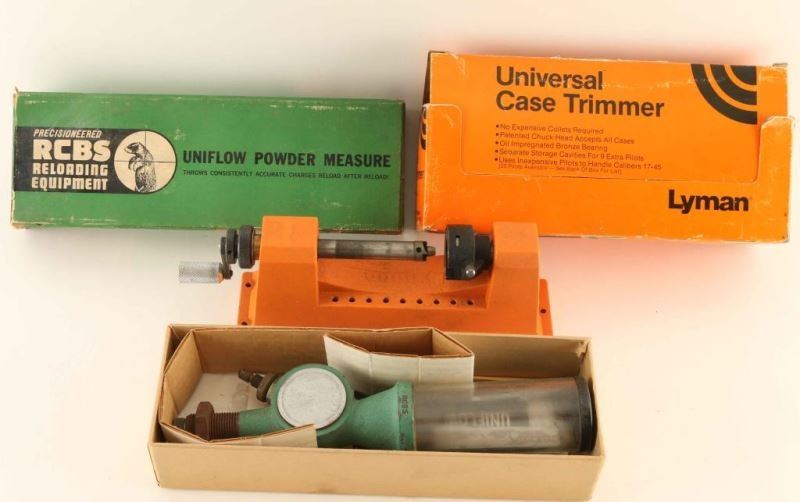 Including a Lyman Universal Case Trimmer and an RCBS Uniflow Powder Measure.