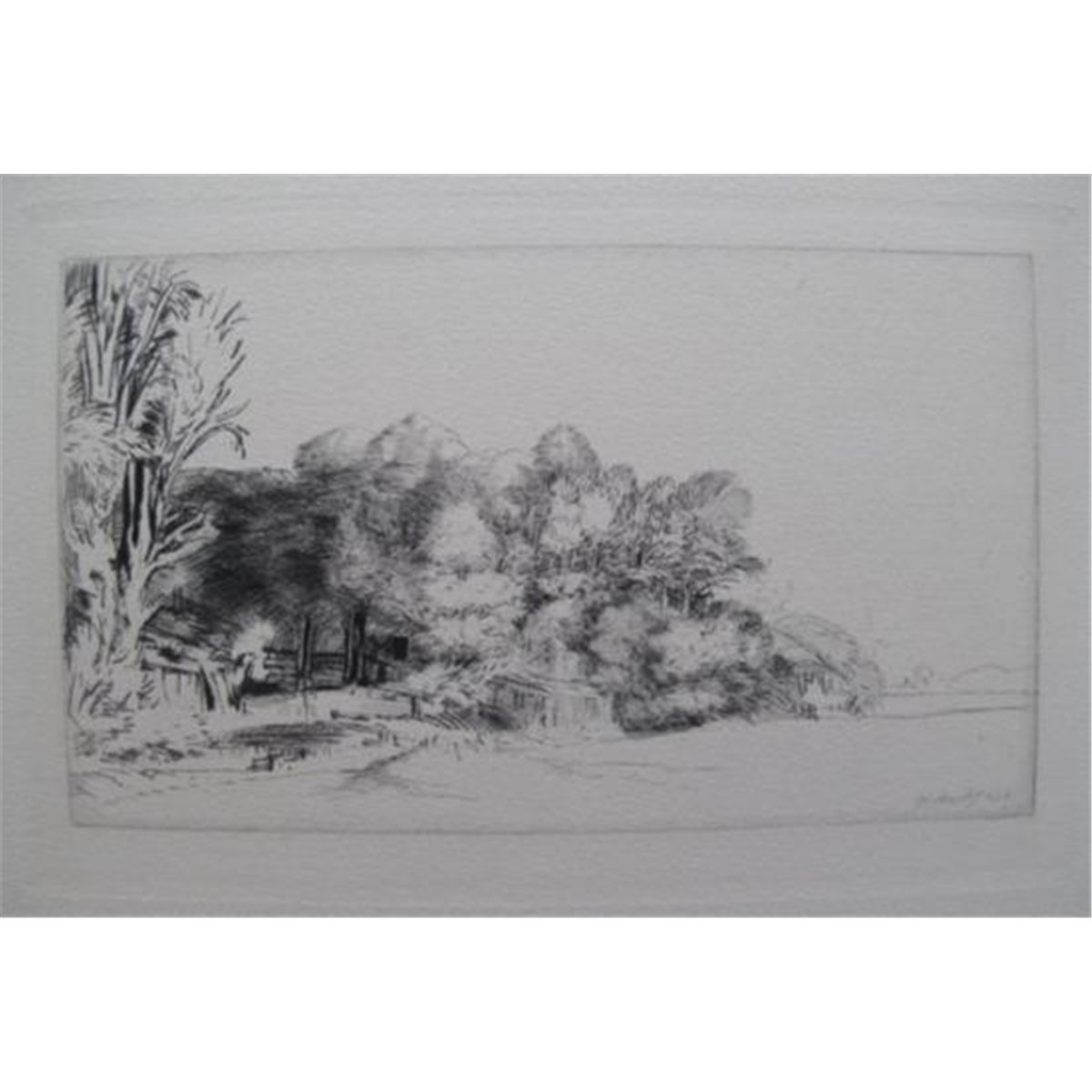 This is a beautiful etching, after Rembrandt, by master engraver Amand Durand. Titled "Clump of Trees with a Vista" (year of original 1652). Signed in the plate. Measurements: image size is 5" x 8-1/4" on 11" x 15" Somerset paper. Comes with a certificate of authenticity. Ref. #222 according to the British Catalogue, circa 1797, is a hand pulled-ETCHING from the AUTHENTIC & Original copper Rembrandt plates by Armand-Durand (1831-1905) overseen by Art World Industries, inc. This piece is in excellent condition, and has never been framed. Rembrandt was born in 1606 in Leiden , Holland . Before his 30th birthday, the name Rembrandt had become synonymous with artistic excellence. The Dutch master was known worldwide for his highly prized series of classical etchings. These images are known for their delicacy of tone and intricacy of detail. To raise funds in 1657, Rembrandt sold the plates at an auction of his entire estate to a prestigious European family with the expressed stipulation that not even one of the etchings could be printed until a full 100 years had passed after his death. The family faithfully honored the binding agreement. Owing to their great popularity and soft metallurgical consistency, the original plates became worn by the mid 1800's. To save these genius-inspired works, Amand Durand, a master engraver, born in France in 1831, spent the major part of his career exactly duplicating the genius of Rembrandt onto hard, lasting copper plates. Art historians and critics have been stunned by the incredible quality Durand achieved through his own technical genius. Historical references indicate that Armand Durand's amazing skills were well known to expert of the 19th and early 20th centuries. Many esteemed art critics and curators feel that Durand's works not only do great justice to Rembrandt's original concepts but subtly improve on the legendary Dutch master in a technical sense. Amand -Durand was a great admirer of Rembrandt. He desired to study the plates and techniques of this genius. Unfortunately at the time there only remained about 100 known plates, which were available to produce fine quality impressions. For 100 years the bulk of Rembrandt's plates were shrouded in mystery. As time moved on some of Rembrandt's plates began to surface. By this time Rembrandt's plates were miserably worn and dull. Amand-Durand, who by now had made the ranks of a noted engraver, decided to remedy this with his own gifted talents. He researched and intensely studied pieces that were available only in collections. From here on he spent the major part of his life exactly duplicating Rembrandt's images onto copper plates. These recreations were called Amand-Durand's after Rembrandt. Their unbelievable clarity and exactness were achieved because Amand-Durand used as his guide, not the worn and dull plates, but the first and second state etchings of the master's original works. By this time Durand's talent were known to experts of the 19th and 20th centuries. In 1855, Conservator of the Cabinet de Estampes, George Duplessis so appreciated the genius of this man that he had his work published in books which belong to the Bibliotheque Nationale in France. Amand-Durand was used as master etcher in an anthology of European engravings, which became so valuable that they were kept under locked scrutiny in most libraries. What we have is a noted master duplicating a master some 200 years later. Soon after Amand-Durand's death in 1905, his original copper plates were obtained by the prestigious French book publishing family, DOMINIQUE VINCENT et Cie. They mainly published the work for book illustrations to the Bibliotheque Nationale and the Louvre Museum as beautiful exact duplications of Rembrandt's etchings. Sporadically they sold to private parties interested in this unique creation. It was this reproducing that caused hushed rumor that spread throughout the entire art world. It was discreetly rumored among noted art circles, that in the early 1900's numerous Amand Durand after Rembrandt etchings found their way into famous collections much to the dismay of many. This was the rumor until 1985. An American art dealer doing research on the availability of Rembrandt etchings came across some so questionably perfect that he decided to research even further. Fierce studying proved that these were in fact Amand-Durand etchings that had been rumored and gossiped about for so many years. Completely aware of what information he and come across and the problems that developed when they were placed in the wrong hands, he resolved to locate the original copper plates. This took quite some time. However with unbelievable resourcefulness he was able to locate the Dominique Vincent family who had been completely unaware of the stories that were inadvertently created with these prints. The Bibliotheque Nationale and the Louvre Museum in Paris had been acquiring these etchings to allow the French to see the unimaginable story behind them. The American dealer purchased all 348 original copper plates. This allowed the American public to also see this unimaginable story of how a noted artisan through his talent and dedication for the great master Rembrandt, created effects of such quality that the repercussions were felt throughout the entire art world for many, many years. Over a century after Amand-Durand painstakingly recreated Rembrandt's etching, the benefits of his devotion to quality and beauty are again felt throughout the art world. The piece was made from the re-worked original copper plate by Amand Durand in the late 1800s. It is absolutely beautiful!
