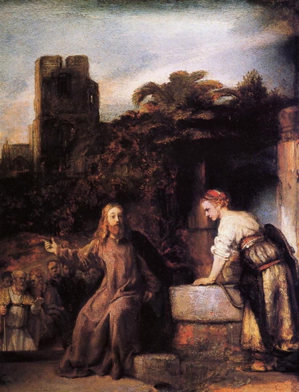 Artist: Rembrandt - Title: Christ and the woman of Samaria - Medium: Fine Art Giclee on Canvas - Image Size: Approximately 32 inches x 24.5 inches - Unframed on Unstretched Canvas - Biography: Rembrandt Harmenszoon van Rijn (c.July 1606 - October 1669) was a Dutch draughtsman, painter, and printmaker. An innovative and prolific master in three media, he is generally considered one of the greatest visual artists in the history of art and the most important in Dutch art history. Unlike most Dutch masters of the 17th century, Rembrandt's works depict a wide range of style and subject matter, from portraits and self-portraits to landscapes, genre scenes, allegorical and historical scenes, and biblical and mythological themes as well as animal studies. His contributions to art came in a period of great wealth and cultural achievement that historians call the Dutch Golden Age, when Dutch art (especially Dutch painting), although in many ways antithetical to the Baroque style that dominated Europe, was extremely prolific and innovative and gave rise to important new genres. Like many artists of the Dutch Golden Age, such as Jan Vermeer of Delft, Rembrandt was also an avid art collector and dealer.
