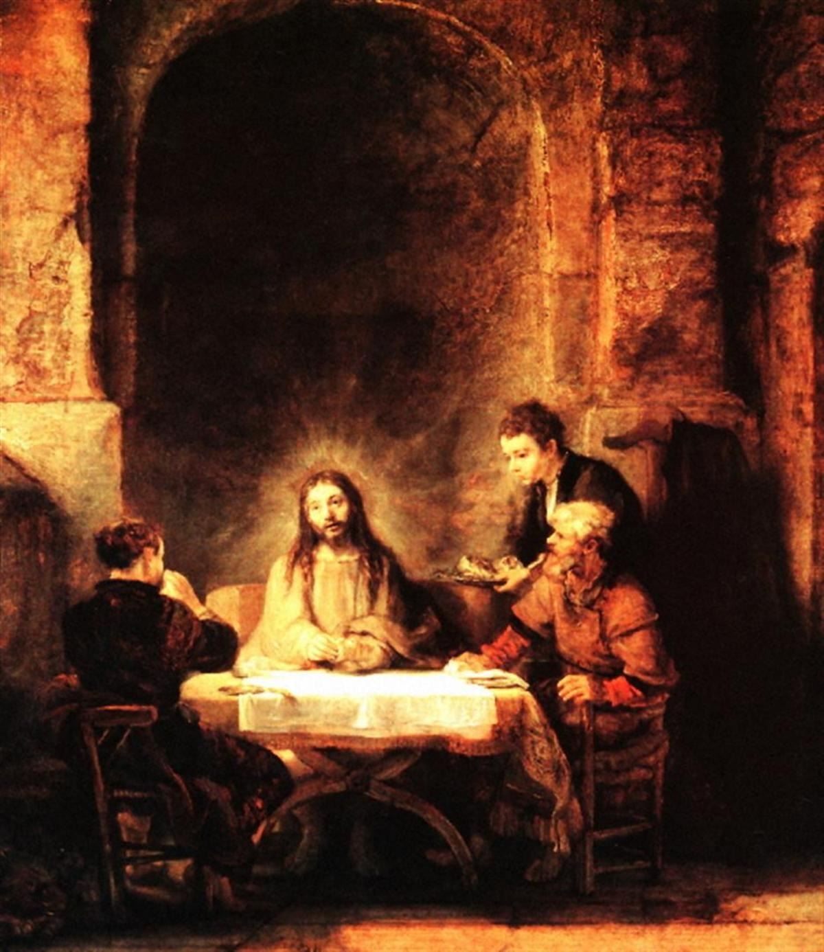 Artist: Rembrandt - Title: Christ in Emmaus - Medium: Fine Art Giclee on Canvas - Image Size: Approximately 20 inches x 17.5 inches - Unframed on Unstretched Canvas - Biography: Rembrandt Harmenszoon van Rijn (c.July 1606 - October 1669) was a Dutch draughtsman, painter, and printmaker. An innovative and prolific master in three media, he is generally considered one of the greatest visual artists in the history of art and the most important in Dutch art history. Unlike most Dutch masters of the 17th century, Rembrandt's works depict a wide range of style and subject matter, from portraits and self-portraits to landscapes, genre scenes, allegorical and historical scenes, and biblical and mythological themes as well as animal studies. His contributions to art came in a period of great wealth and cultural achievement that historians call the Dutch Golden Age, when Dutch art (especially Dutch painting), although in many ways antithetical to the Baroque style that dominated Europe, was extremely prolific and innovative and gave rise to important new genres. Like many artists of the Dutch Golden Age, such as Jan Vermeer of Delft, Rembrandt was also an avid art collector and dealer.