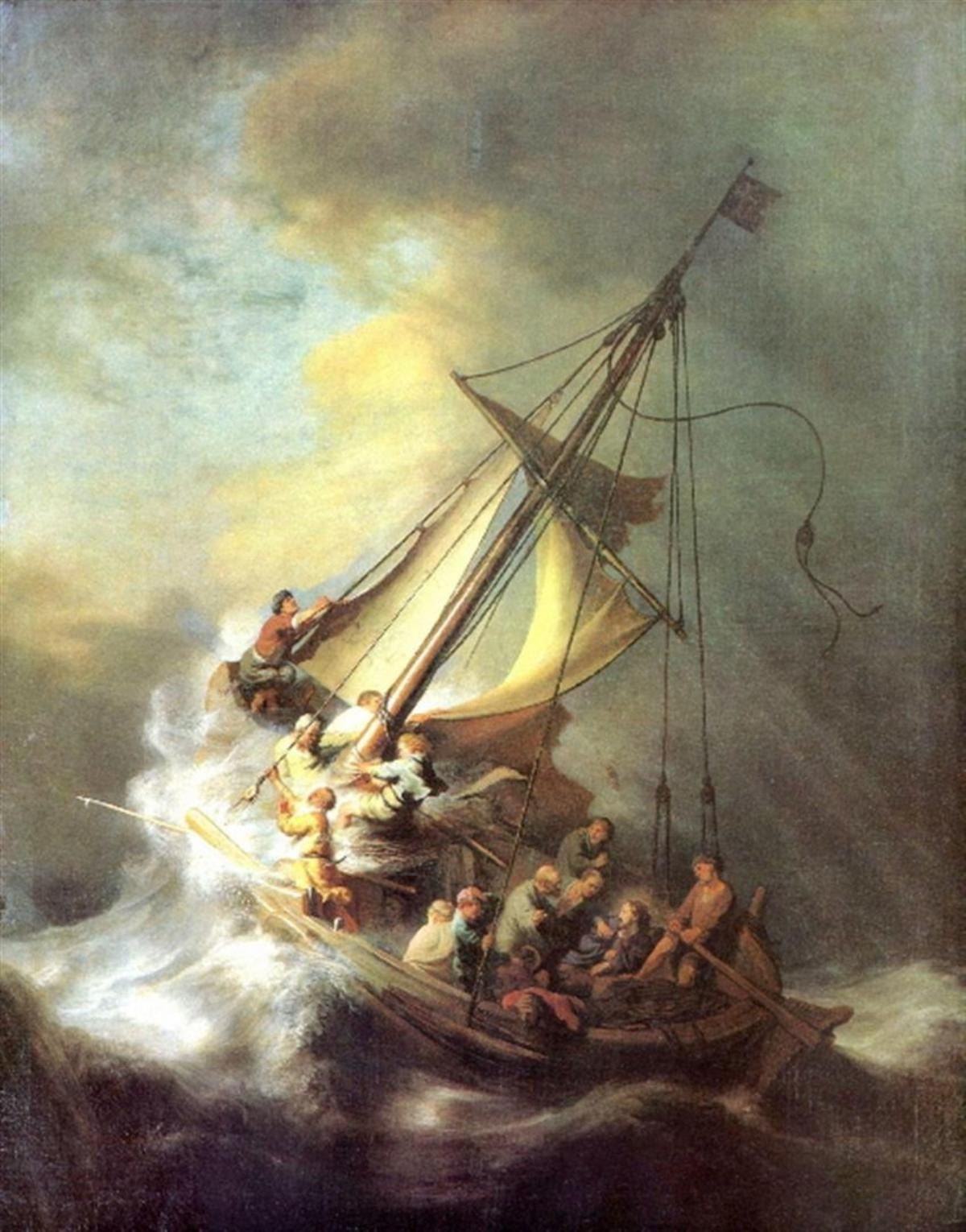 Artist: Rembrandt - Title: Christ in the storm on the lake Galilea - Medium: Fine Art Giclee on Canvas - Image Size: Approximately 32 inches x 25 inches - Unframed on Unstretched Canvas - Biography: Rembrandt Harmenszoon van Rijn (c.July 1606 - October 1669) was a Dutch draughtsman, painter, and printmaker. An innovative and prolific master in three media, he is generally considered one of the greatest visual artists in the history of art and the most important in Dutch art history. Unlike most Dutch masters of the 17th century, Rembrandt's works depict a wide range of style and subject matter, from portraits and self-portraits to landscapes, genre scenes, allegorical and historical scenes, and biblical and mythological themes as well as animal studies. His contributions to art came in a period of great wealth and cultural achievement that historians call the Dutch Golden Age, when Dutch art (especially Dutch painting), although in many ways antithetical to the Baroque style that dominated Europe, was extremely prolific and innovative and gave rise to important new genres. Like many artists of the Dutch Golden Age, such as Jan Vermeer of Delft, Rembrandt was also an avid art collector and dealer.
