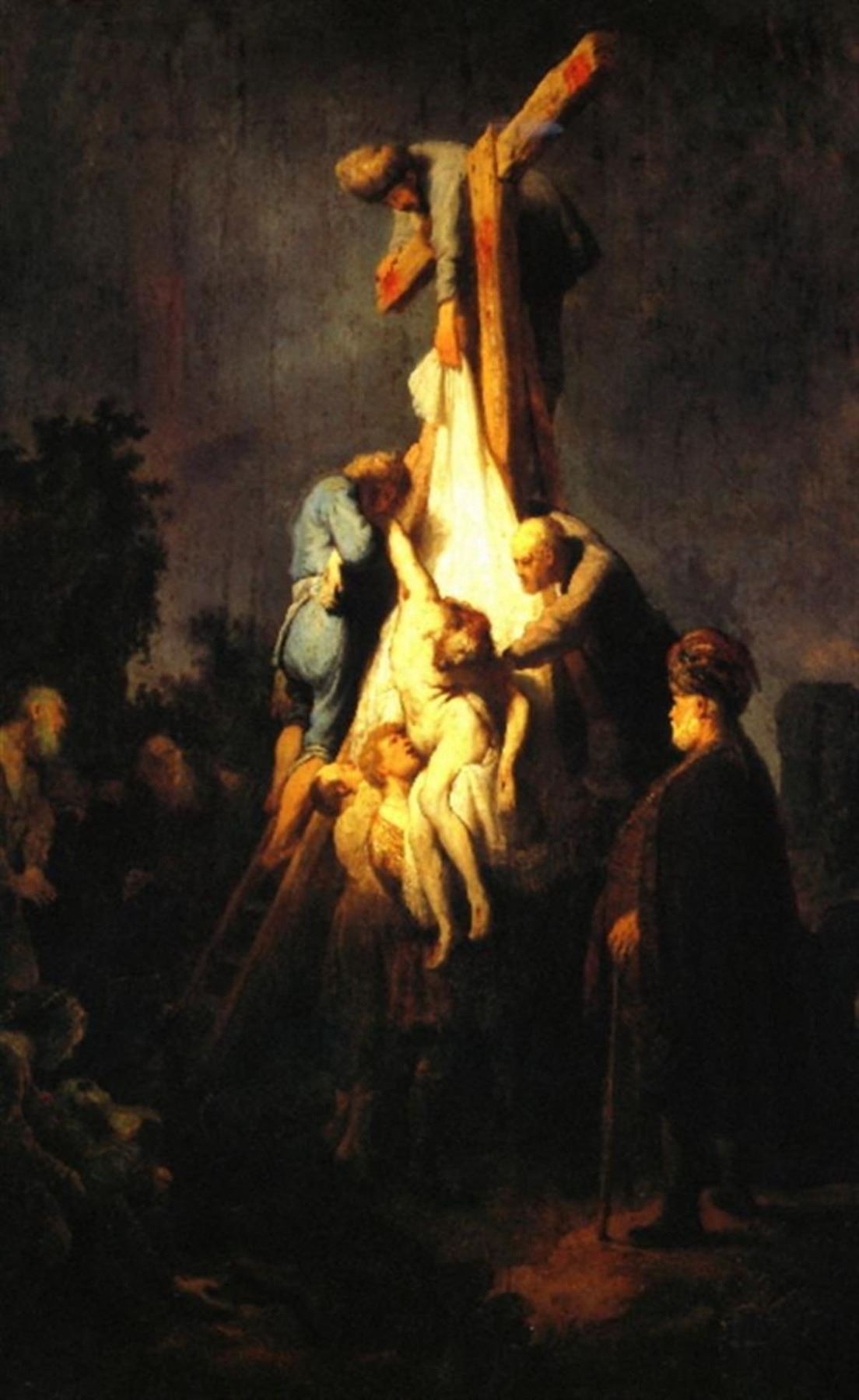 Artist: Rembrandt - Title: Crucifixion - Medium: Fine Art Giclee on Canvas - Image Size: Approximately 32 inches x 19.75 inches - Unframed on Unstretched Canvas - Biography: Rembrandt Harmenszoon van Rijn (c.July 1606 - October 1669) was a Dutch draughtsman, painter, and printmaker. An innovative and prolific master in three media, he is generally considered one of the greatest visual artists in the history of art and the most important in Dutch art history. Unlike most Dutch masters of the 17th century, Rembrandt's works depict a wide range of style and subject matter, from portraits and self-portraits to landscapes, genre scenes, allegorical and historical scenes, and biblical and mythological themes as well as animal studies. His contributions to art came in a period of great wealth and cultural achievement that historians call the Dutch Golden Age, when Dutch art (especially Dutch painting), although in many ways antithetical to the Baroque style that dominated Europe, was extremely prolific and innovative and gave rise to important new genres. Like many artists of the Dutch Golden Age, such as Jan Vermeer of Delft, Rembrandt was also an avid art collector and dealer.