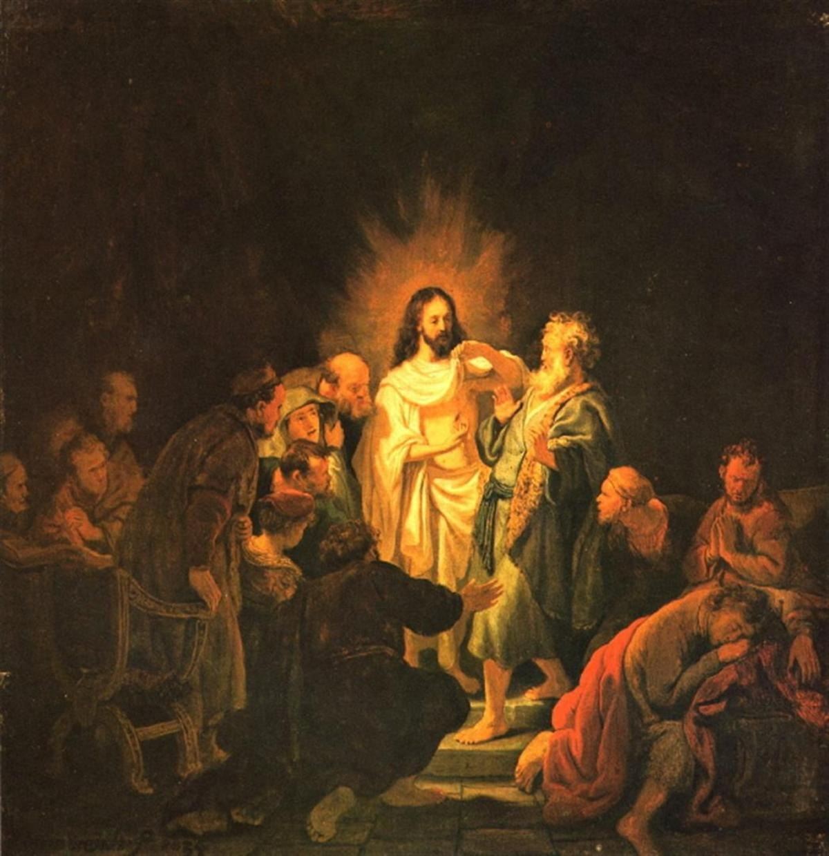 Artist: Rembrandt - Title: Doubting Thomas - Medium: Fine Art Giclee on Canvas - Image Size: Approximately 32 inches x 31 inches - Unframed on Unstretched Canvas - Biography: Rembrandt Harmenszoon van Rijn (c.July 1606 - October 1669) was a Dutch draughtsman, painter, and printmaker. An innovative and prolific master in three media, he is generally considered one of the greatest visual artists in the history of art and the most important in Dutch art history. Unlike most Dutch masters of the 17th century, Rembrandt's works depict a wide range of style and subject matter, from portraits and self-portraits to landscapes, genre scenes, allegorical and historical scenes, and biblical and mythological themes as well as animal studies. His contributions to art came in a period of great wealth and cultural achievement that historians call the Dutch Golden Age, when Dutch art (especially Dutch painting), although in many ways antithetical to the Baroque style that dominated Europe, was extremely prolific and innovative and gave rise to important new genres. Like many artists of the Dutch Golden Age, such as Jan Vermeer of Delft, Rembrandt was also an avid art collector and dealer.