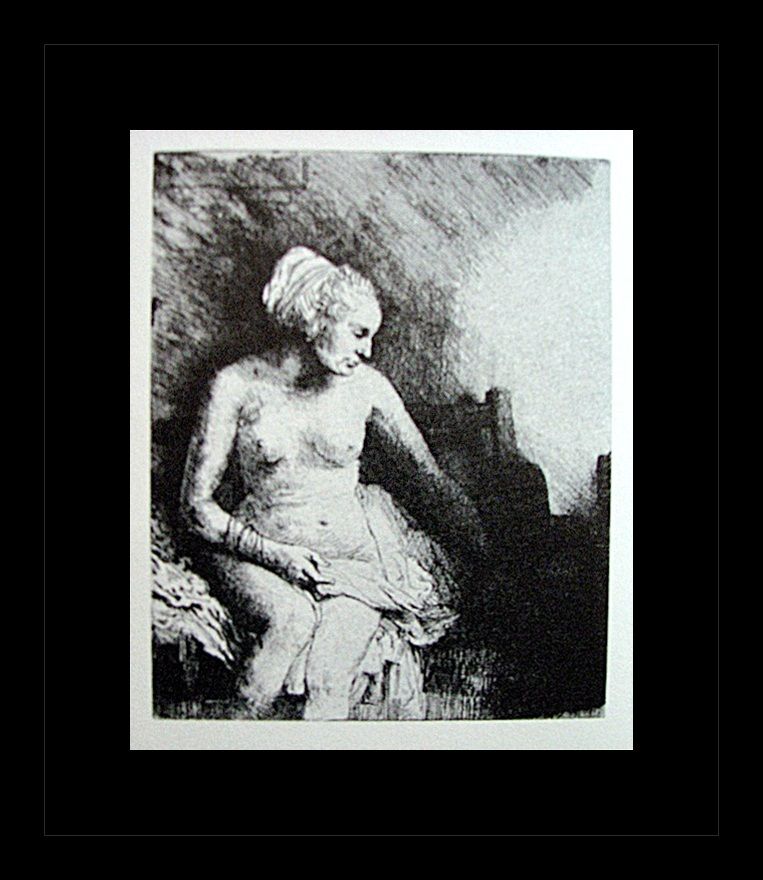 Erotic sketch lithograph by Rembrandt. Comes gallery framed black on black.