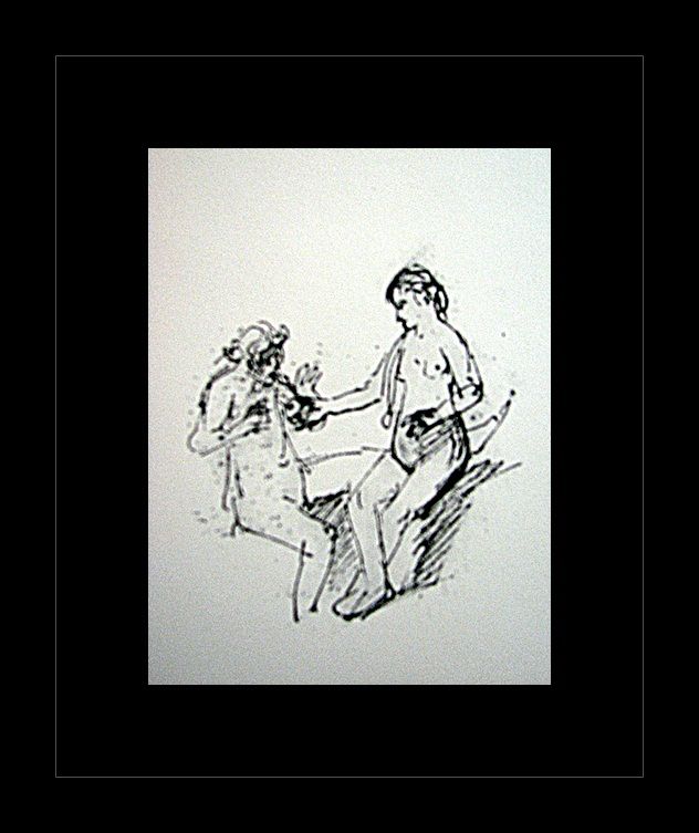 Erotic sketch lithograph by Rembrandt. Comes gallery framed black on black.