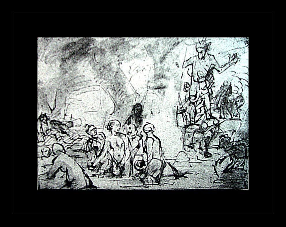 Erotic sketch lithograph by Rembrandt. Comes gallery framed black on black.