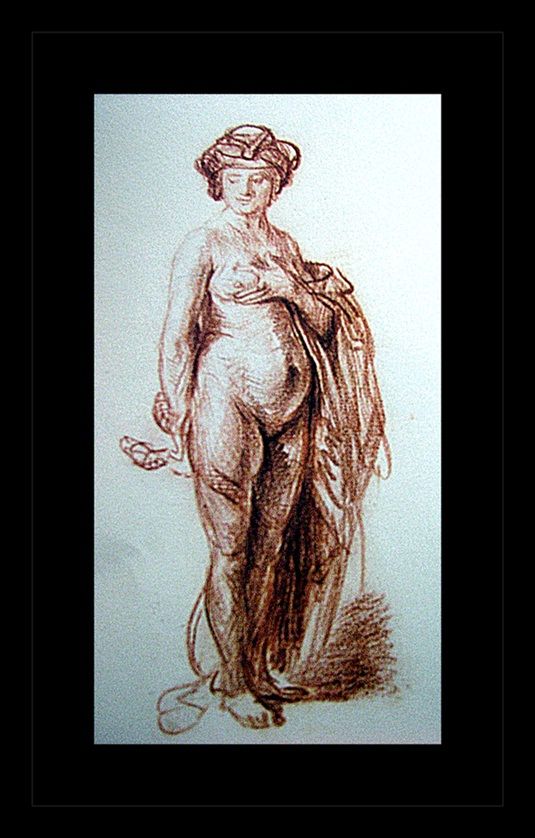 Erotic sketch lithograph by Rembrandt. Comes gallery framed black on black.