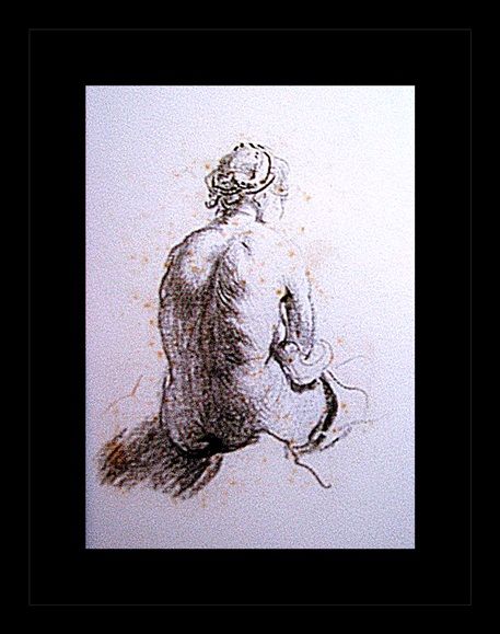 Erotic sketch lithograph by Rembrandt. Comes gallery framed black on black.
