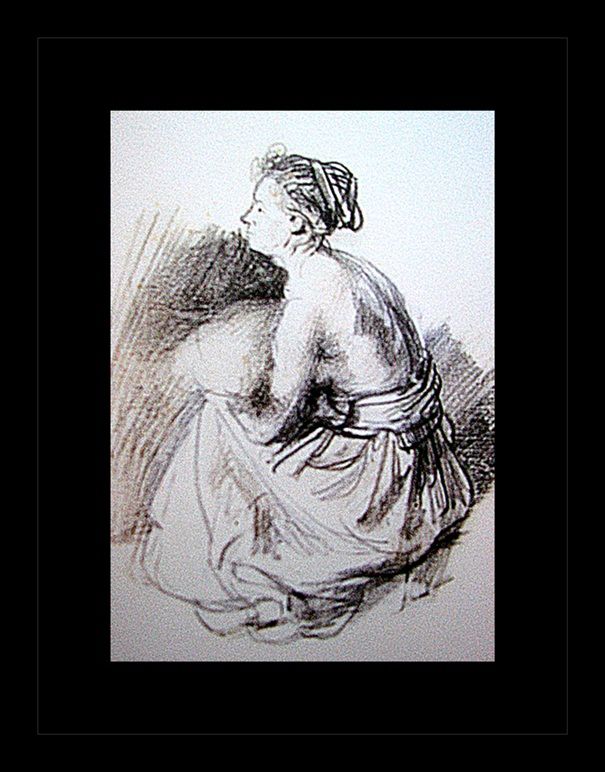 Erotic sketch lithograph by Rembrandt. Comes gallery framed black on black.