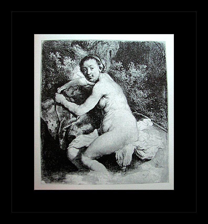 Erotic sketch lithograph by Rembrandt. Comes gallery framed black on black.