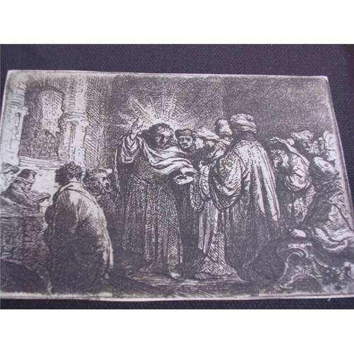 This auction is for a Rembrandt "The Tribute Money" Etching by Titus Fine Arts. This piece was made from a plate produced in C1635. The actual reproduction of this piece was completed sometime in the 19th century. This Etching is from the second and final state, with small margins. This plate is controlled by Titus Fine Arts and has not been reworked!!