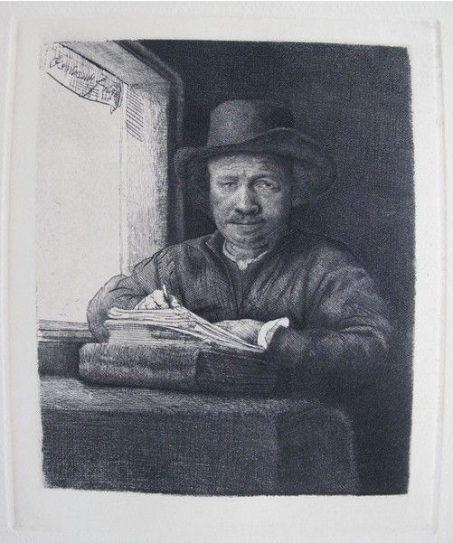 This is a beautiful etching, after Rembrandt, by master engraver Amand Durand. Titled "SELF PORTRAIT DRAWING AT WINDOW" (year of original 1648). Signed in the plate. Measurements: image size is 6.5" x 5.5" on 15" x 11" Somerset paper. Comes with a certificate of authenticity. Ref. #22 according to the British Catalogue, circa 1797, is a hand pulled-ETCHING from the AUTHENTIC & Original copper Rembrandt plates by Armand-Durand (1831-1905) overseen by Art World Industries, inc. This piece is in excellent condition, and has never been framed.
