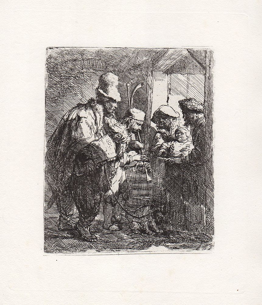 Etching on laid paper after Rembrandt by a master engraver in the 1800's. "The Strolling Musicians " Reference: Bartsch 119 . This impression is well more than 130 years old. This is not a modern reprint but was hand pulled from the copper plate c.1880. The strike is crisp and the lines are sharp. (Image size 4 1/2 x 5 1/2 inches) This print is in excellent condition. Comes with a Certificate of Authenticity.